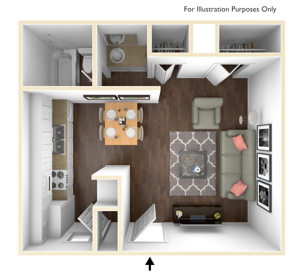 These are our more affordable studio apartments. Access to sparkling pools and a laundry center on-site.